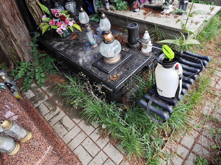 Usuwanie chwastów realizujemy poprzez precyzyjny oprysk odpowiednim herbicydem. Po obumarciu roślin są one usuwane mechanicznie lub ręcznie, co pozwala skutecznie oczyścić teren i ograniczyć ich ponowny wzrost. Zabieg wykonujemy w sposób bezpieczny dla nagrobka oraz otoczenia.